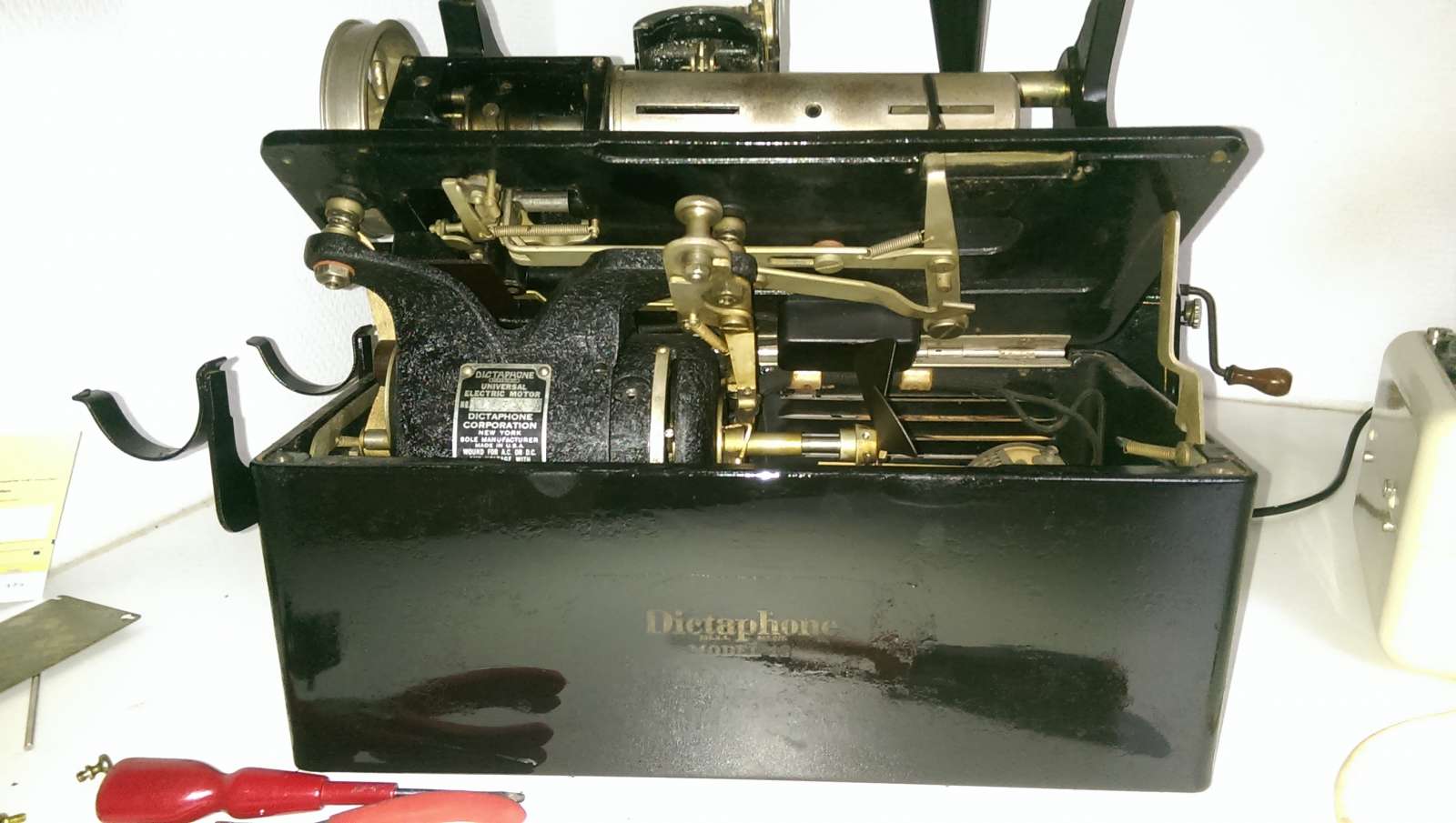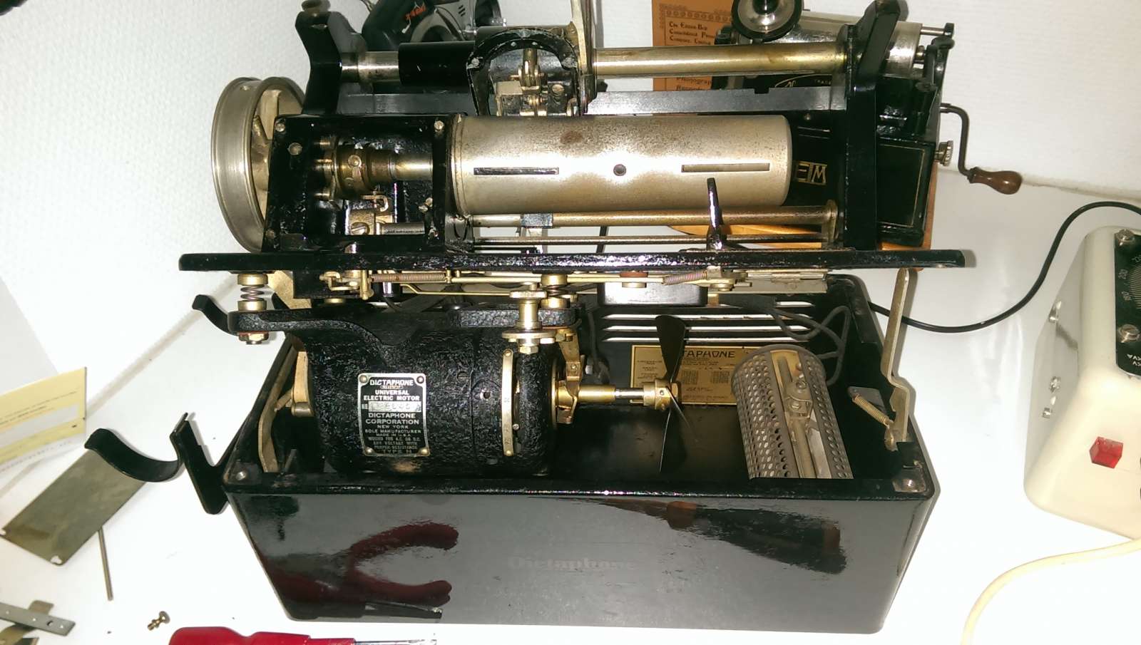 Dit is een dictaphoon uit 1932. Model 12. Prima om mee te experimenteren met wasrol opnames maken.