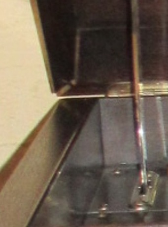 Na afbijten van de bovenzijde van het deksel kon ik hem eruit schuren, lang leve de dikke fineerlaag die HMV gebruikte.