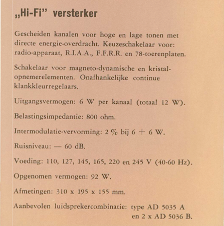 De B7X63A heeft vier eindbuizen, UL84-ers. Bi-ampli in de zin van twee eindversterkers. Andere radio's met gescheiden hoog/laagversterkers en vier eindbuizen zijn de Aristona/Siera SA3027A, de SA3029A, een radio evenals de B7X63A met motorafstemming en de SA5029A. Maar ja, dat is Aristona en dan mag het geen Bi-ampli meer heten en klinken dan ook beduidend slechter......:whistle: