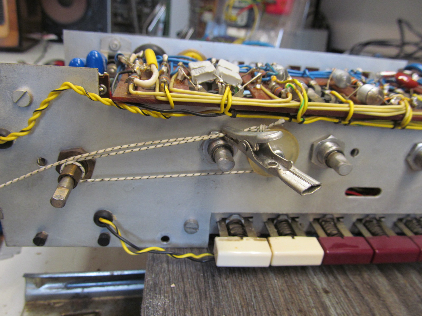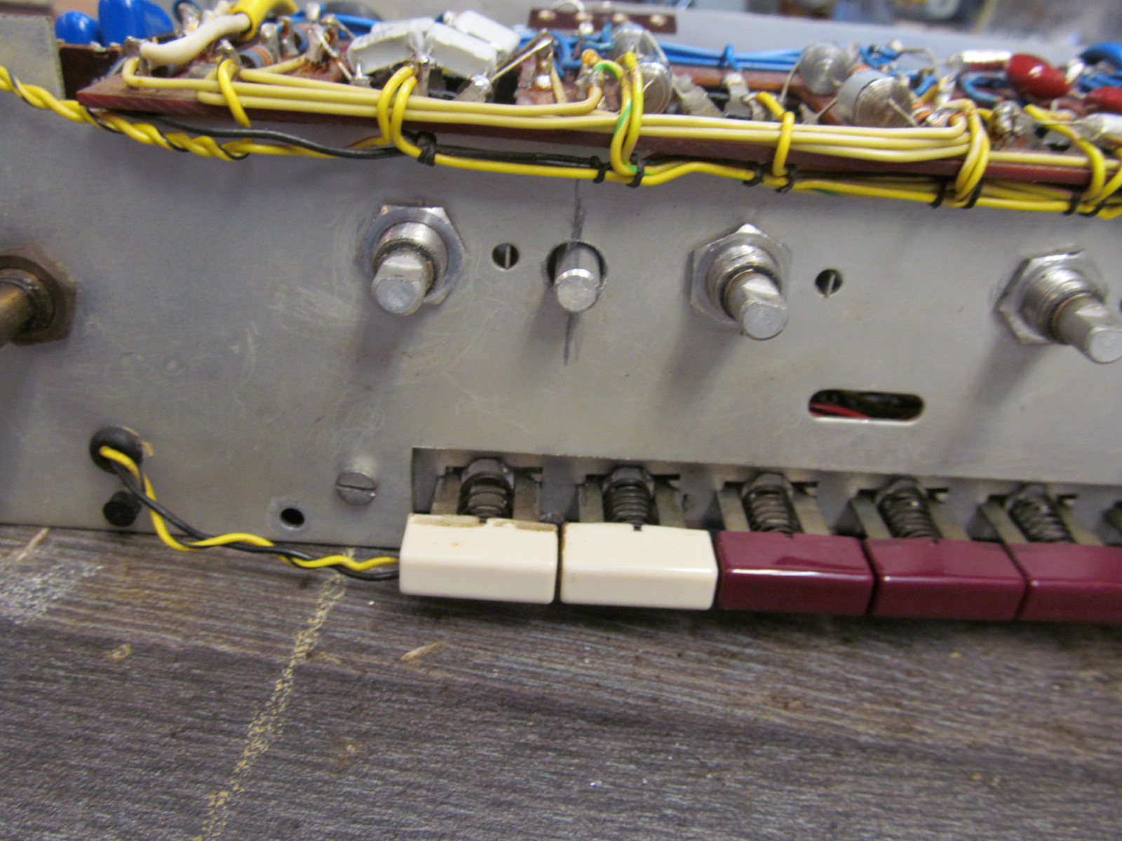 veel problemen en is niet te vervangen. een oplossing die op het www is te vinden is het plaatsen van een kleine 10K schuifpotmeter op het front en deze op de bediening te monteren met een stangetje. Helaas zijn deze schuifpotmeter niet te vinden.