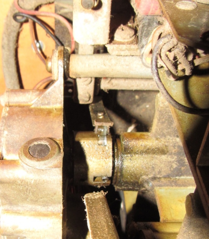 Om te voorkomen dat de rol door bleef draaien had men tussen de contacten van de detent switch isolatie tape geplakt.