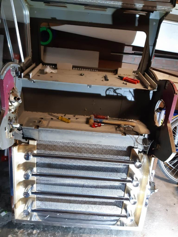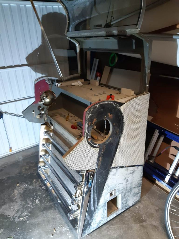Afgelopen vrijdag het mechaniek uitgebouwd om te doen en een begin met het strippen van de kast gemaakt zodat de spullen naar de spuiterij kunnen.