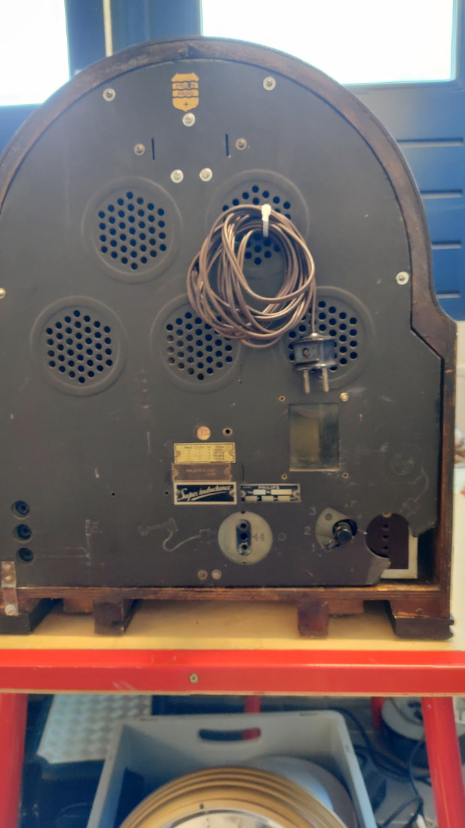 Radio uitgekast en er is in de loop de jaren wel 1 en ander aan geklust. De dikke papier\wax condensatoren zijn niet origineel, denk ik en waarschiujnlijk gemonteerd