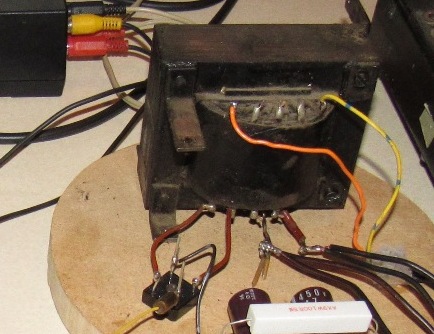 In plaats van de twee beker elco's komt er een beker elco van 50µF plus 50µF op en een smoorspoel in plaats van de weerstand.