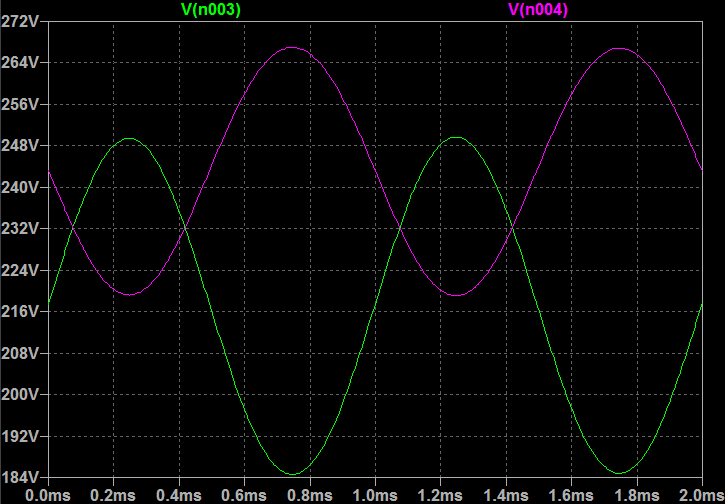Met het blauwe instellertje is het spanningsverschil precies te nullen op 234 V.